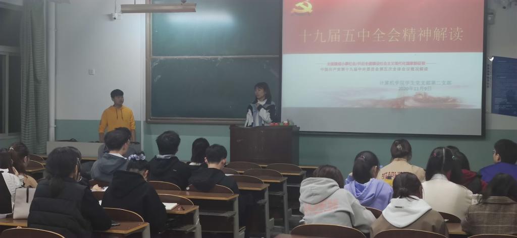 为学习贯彻十九届五中全会精神,促进学生党员牢记使命,充分发挥党员的先进性,11月10日,bat365在线平台官方网站学生第二党支部组织41名学生党员和预备党员、发展对象于主楼208教室开展了“十九届五中全会精神”主题讨论活动。